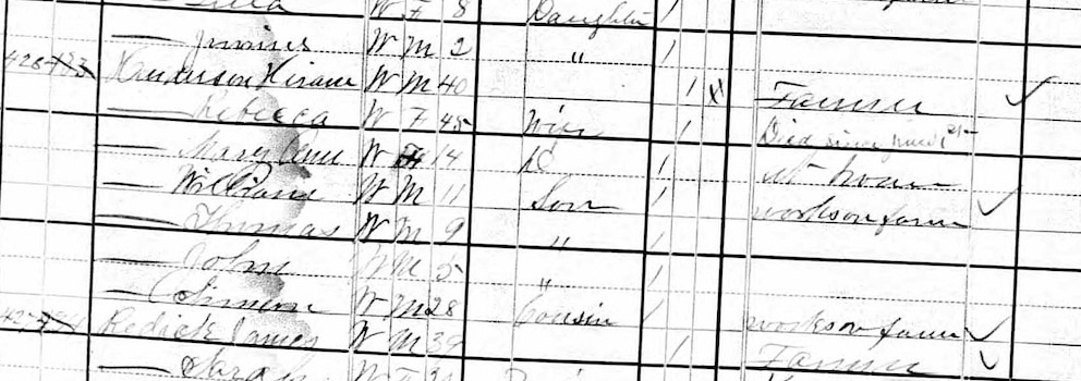 Simon Henderson living with Mary's son (Hiram Henderson) in the 1880 census